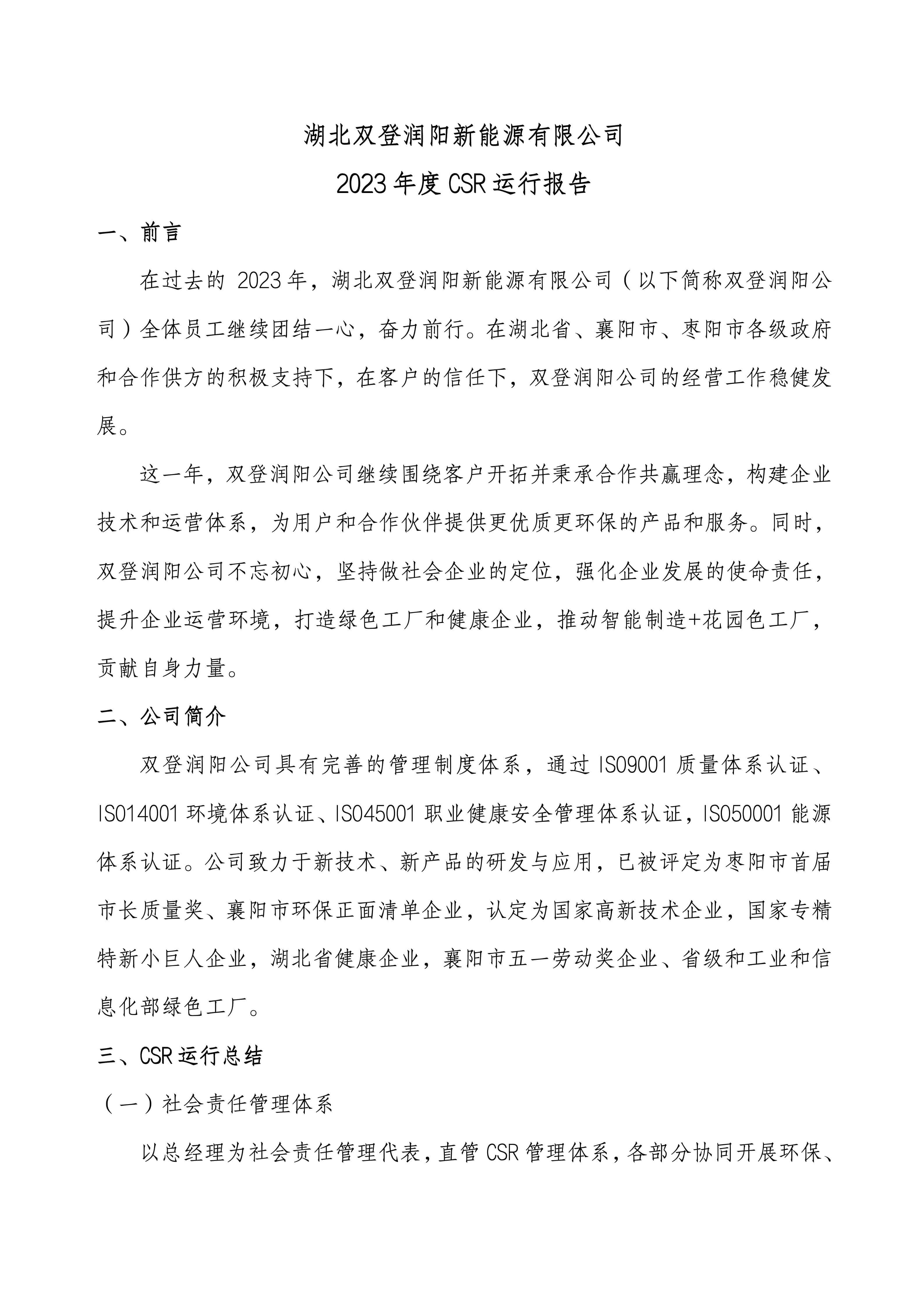2023年润阳公司CSR运行报告