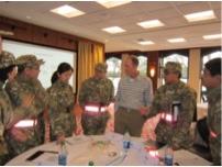 Doctor and Colonel John offered “leadership identity establishment” training in the U.S. Army and West Point course. The training lectured on the “added value” of leadership development of the West Point model and leadership training of the U.S. Army and West Point model, and made the point that leadership qualities are to lead others in the mass and emphasize on communication. Officer Doctor Jack from West Point introduced the strategic framework composed of candidate choosing, leader development system and leadership growth of the academy training numerous political and business elites, and the goal of training and educating leaders.